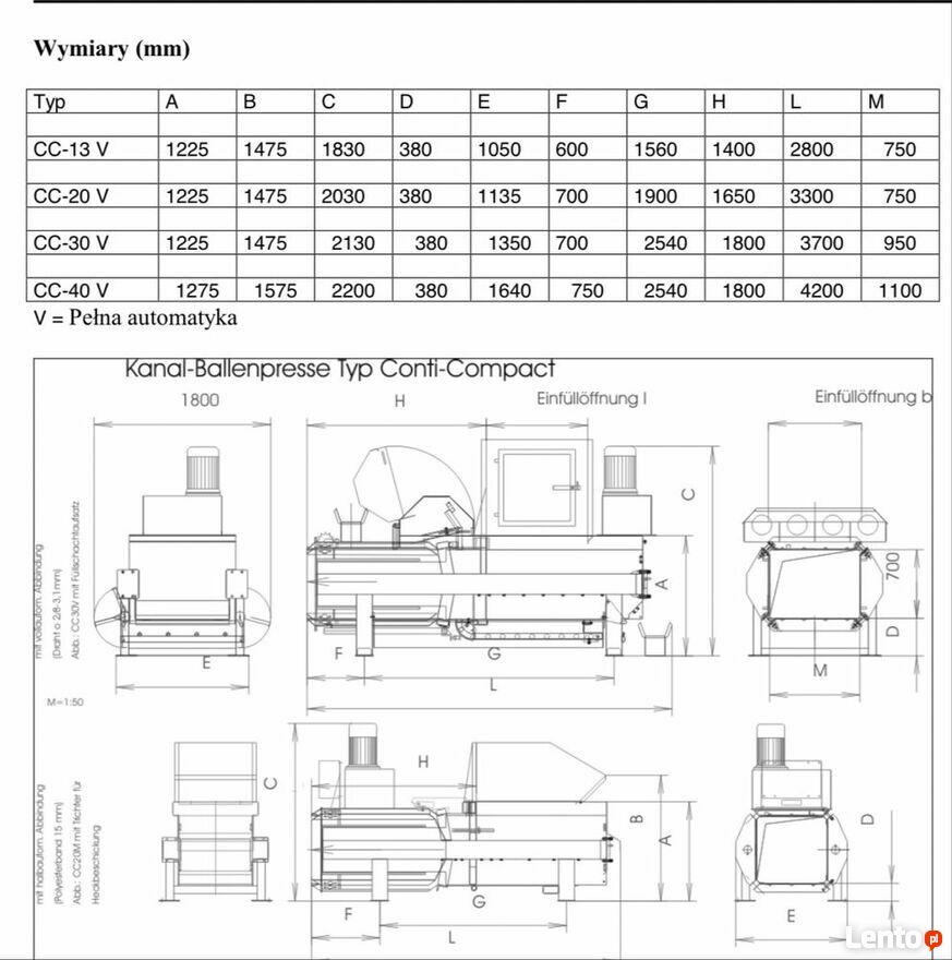 Mamy do zaoferowania belownice prase kanałowa z automatycznym wiązaniem do każdego rodzaju odpadów firmy Kampwerth Umpwelttechnik ( Presto ) typ Conti Compact CC 13V.Maszyna świetnie sprawdza się podczas pracy z papierem oraz tworzywami. Prasa w pełni sprawna, możliwość prezentacji na miejscu w siedzibie naszej firmy. Wiązanie bel drutem - tryb automatyczny - regulowana wielkość bel. Bardzo wydajne i kompaktowe urządzenie. Bele w okolicach 250 kg. Duży ładunek na aucie ze względu na gabaryty belek. Posiadamy pełną dokumentację techniczną wraz ze schematami.
